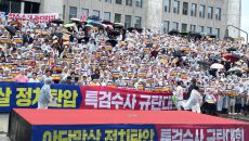 비 맞으며 '특검 규탄' 외친 野…조은석 고발 이어 장외투쟁 준비