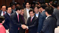 [포토] 의원들과 인사 나누는 김문수 대선 후보
