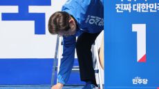 연설문 줍는 이재명 더불어민주당 대선 후보