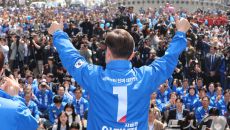승리 위해 두 손 들어올린 이재명 더불어민주당 대선 후보