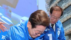 아시아투데이 김동욱 기자 =이재명 더불어민주당 대선후보가 제21대 대선 공식 선거운동 첫 날인 12일 회복·성장·행복 등 3대- 2025.05.12 11:12