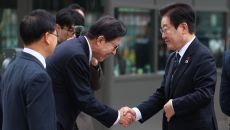 (부산=뉴스1) 이재명 기자 = 이재명 대통령이 23일 부산 동구 해양수산부 청사에서 열린 개청식에서 박형준 부산시장과 인사를- 2025.12.23 15:05