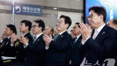 (부산=뉴스1) 허경 기자 = 이재명 대통령이 23일 부산 동구 해양수산부 청사에서 열린 개청식에서 경과보고를 경청한 뒤 박수- 2025.12.23 15:06