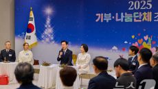 (서울=뉴스1) 허경 기자 = 이재명 대통령이 16일 용산 대통령실에서 열린 2025년 기부·나눔단체 초청행사에서 초록우산에- 2025.12.16 15:11