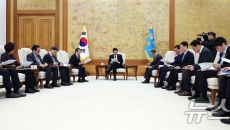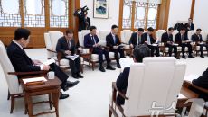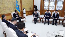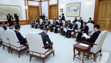 참모진들과 청와대서 차담 갖는 이재명 대통령