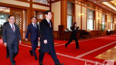 (서울=뉴스1) 이재명 기자 = 이재명 대통령이 29일 대통령실 이전 작업이 마무리된 청와대로 출근한 뒤 위성락 안보실장, 김- 2025.12.29 10:00
