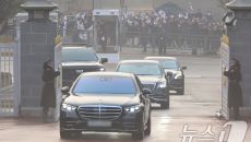 (서울=뉴스1) 허경 기자 = 이재명 대통령의 차량이 29일 오전 청와대 정문을 통과하고 있다. 윤석열 전 대통령이 청와대를- 2025.12.29 10:09