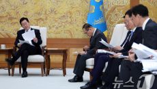 (서울=뉴스1) 이재명 기자 = 이재명 대통령이 29일 대통령실 이전 작업이 마무리된 청와대로 출근한 뒤 위성락 안보실장, 김- 2025.12.29 09:59