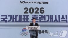 (진천=뉴스1) 김성진 기자 = 유승민 대한체육회장이 7일 충북 진천선수촌 벨로드롬에서 열린 2026 국가대표 훈련개시식에서- 0분전