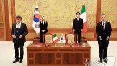 (서울=뉴스1) 이재명 기자 = 이재명 대통령과 조르자 멜로니 이탈리아 총리가 참석한 가운데 19일 청와대에서 김광용 행정안전- 1분전