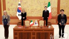 (서울=뉴스1) 이재명 기자 = 이재명 대통령과 조르자 멜로니 이탈리아 총리가 참석한 가운데 19일 청와대에서 김정희 한국반도- 1분전
