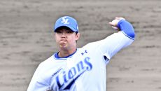 20일 일본 오키나와 온나손 아카마 구장에서 열린 대한민국 야구 대표팀과 삼성 라이온즈의 평가전, 배찬승이 역투하고 있다. 오- 2분전