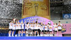 SK슈가글라이더즈가 팀의 주축인 96년생 선수들의 활약을 바탕으로 삼척시청을 누르고 2년 연속 통합우승의 금자탑을 쌓아올렸다.- 2025-04-27 17:19