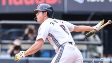 [사진]1타점 적시타 케이브,'4안타 경기 완성'