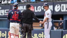 항의하는 두산 김재환