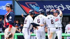 [사진]오명진 만루포에 기뻐하는 두산 베어스