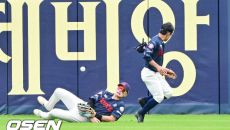 [사진]김기연 타구 놓치는 황성빈-윤동희