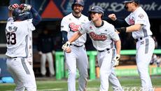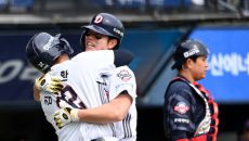 [포토] 만루포 오명진, 김재환과 뜨거운 포옹
