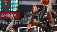 카굴랑안 중심의 공격 전개 살아나 해먼즈 19득점·허훈 17득점 맹활약 SK 상대 2패 뒤 1승…챔프전 ‘불씨’ 프로농구 수원- 2025-04-27 21:33