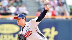 [사진]힘차게 공 뿌리는 두산 선발 최승용