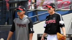 27일 광주 기아챔피언스필드에서 열린 KIA 타이거즈와 LG 트윈스의 경기. LG 송승기, 임찬규가 숨을 고르고 있다. 광주=- 2025-04-27 14:29