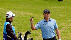 [mhn포토] 전성현 '캐디와 함께 화이팅'