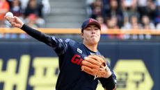 27일 잠실야구장에서 열린 롯데와 두산의 경기, 1회말 1사 1,2루 롯데 박진이 두산 양석환을 병살로 처리하며 주먹을 불끈- 2025-04-27 14:20