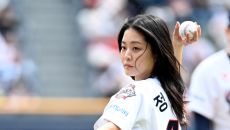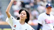 27일 잠실야구장에서 열린 롯데와 두산의 경기, 배우 정수빈이 시구를 하고 있다. 잠실=허상욱 기자wook@sportschos- 2025-04-27 14:20