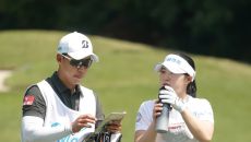 [mhn포토] 고지우, 캐디 나우성과 살피는 공략지점