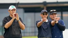 [포토] 두번째 경기 나서는 이대호, 김태균, 박용택, 이보미, 김하늘, 최나연
