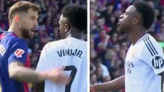 '얘, 또 이러네' 비니시우스, 인성 논란 또 터졌다...꽁꽁 묶은 '바르샤 DF'에 "너네 UCL 실패했잖아" 조롱