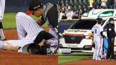 '얼마나 아팠으면..' 무릎 잡고 얼굴 감싼 홍창기, 들것에 실려 나간 충격의 순간