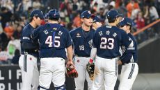 14일 잠실구장에서 열린 LG 트윈스와 키움 히어로즈의 경기. 패한 키움 선수들이 아쉬워하고 있다. 잠실=박재만 기자 pjm@- 2025-05-14 21:35