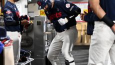 [포토] 솔로포 손호영, 더그아웃 반응 없자 한 행동은?