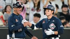 오명진 '고토 코치와 하이파이브'[포토]