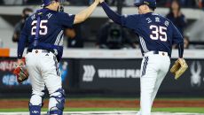 고효준 '위기 넘기고 양의지와 하이파이브'[포토]