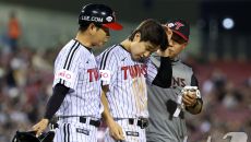[사진]송지만 코치,'헤드샷 맞은 구본혁 걱정'