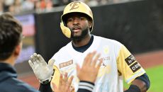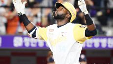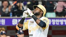 14일 대전 한화생명볼파크에서 열린 두산-한화전. 6회말 무사 플로리얼이 솔로포를 친 후 환호하고 있다. 대전=정재근 기자 c- 2025-05-14 20:39