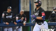 [사진]2루타 김재환,'곰돌이 하트'
