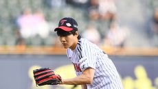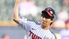 [ST포토] 낭만투수 임찬규 닮은 김기리 시구