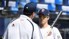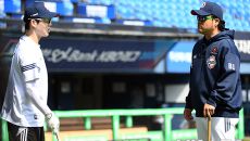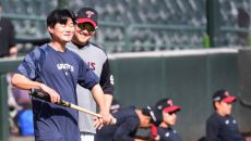 [포토] 손호영 'LG 친정 식구들과 반가운 인사'
