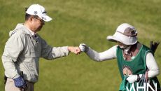 [mhn포토] 정연수, 캐디와 살피는 퍼트 라인