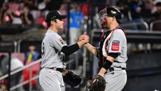 [포토] 한화 김경문 감독-김서현 '완벽한 승리'