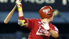 [포토]희생플라이로 1점 추가하는 SSG 최준우