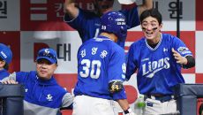 [포토] 원태인 막아내자 김영웅이 역전시켰다