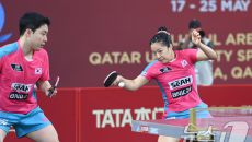 (서울=뉴스1) 사진공동취재단 = 임종훈·신유빈이 20일(현지시간) 카타르 도하 카타르대학교 스포츠 컴플렉스에서 열린 '202- 2025-05-20 20:55