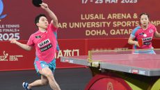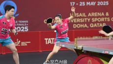 임종훈, 신유빈이 20일 카타르 도하 카타르대학교 스포츠 컴플렉스에서 열린 2025 국제탁구연맹(ITTF) 세계선수권대회 혼합- 2025-05-20 20:40