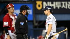 20일 잠실야구장에서 열린 SSG와 두산의 경기, 5회말 2사 2루 두산 오명진이 타임을 받아주지 않은 권영철 심판과 이야기를- 2025-05-20 20:06