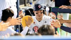 20일 잠실야구장에서 열린 SSG와 두산의 경기, 5회말 1사 1루 두산 양의지가 추격의 2점홈런을 치고 기쁨을 나누고 있다.- 2025-05-20 20:00