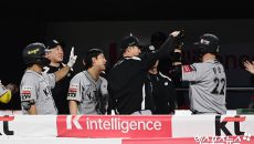이강철 감독 '장성우 홈런에 박수'[포토]
